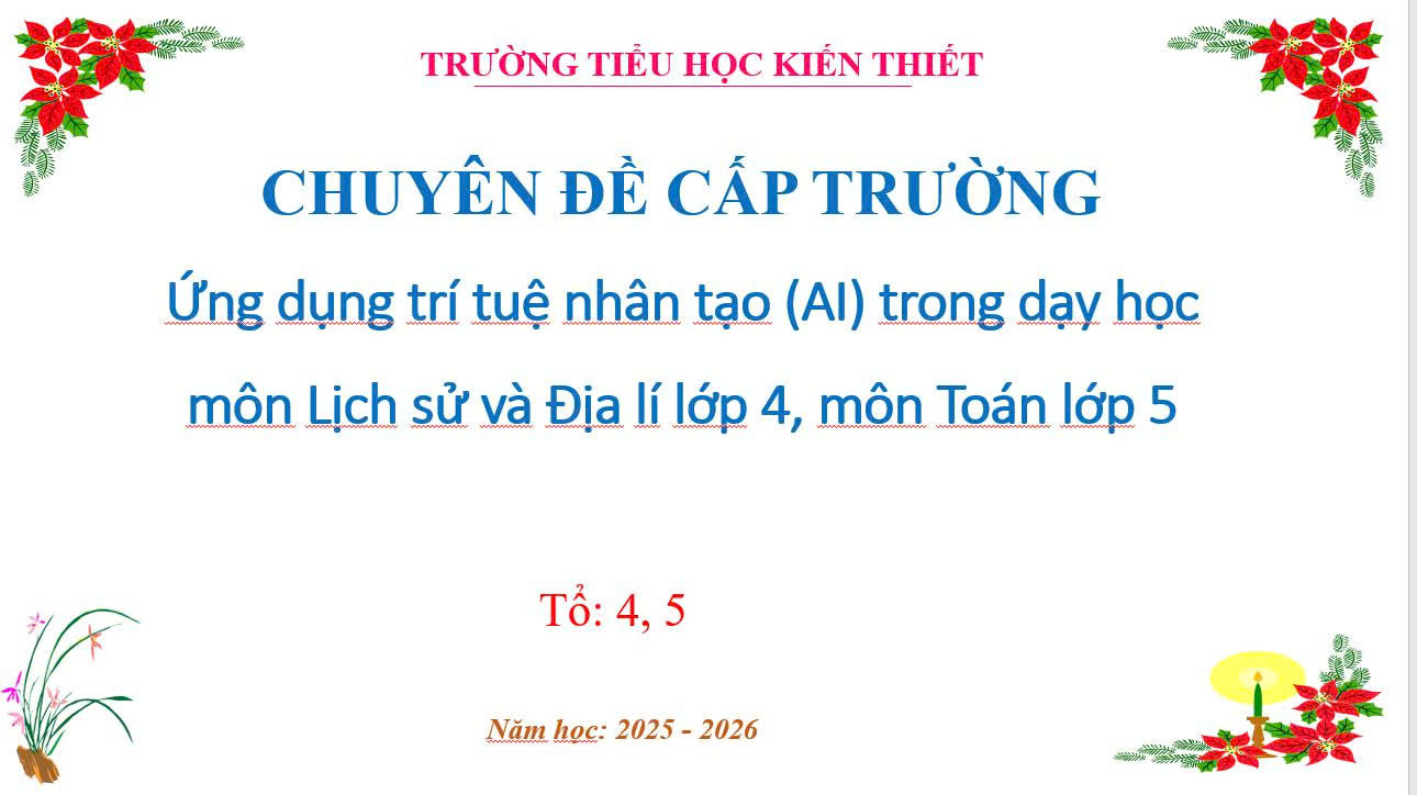 Ngày 22/12/2025, Trường Tiểu học Kiến Thiết đã tổ chức thành công chuyên đề sinh hoạt chuyên môn cấp trường với nội dung “Ứng dụng trí tuệ nhân tạo (AI) trong dạy học môn Lịch sử và Địa lí lớp 4, môn Toán lớp 5”.