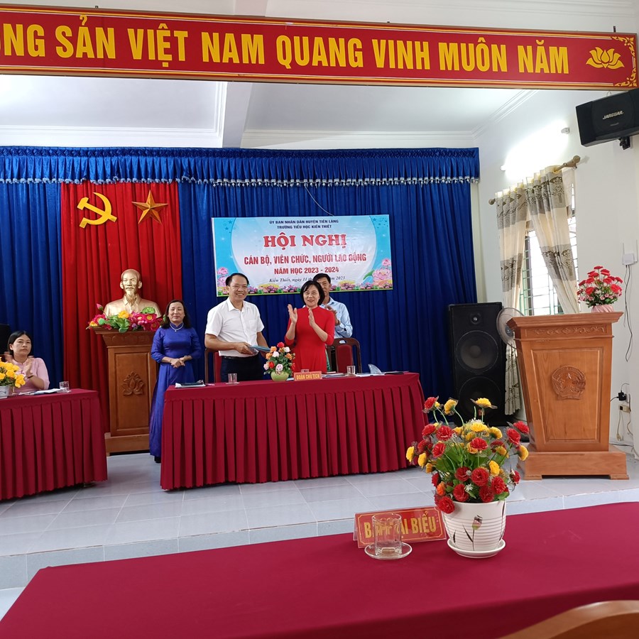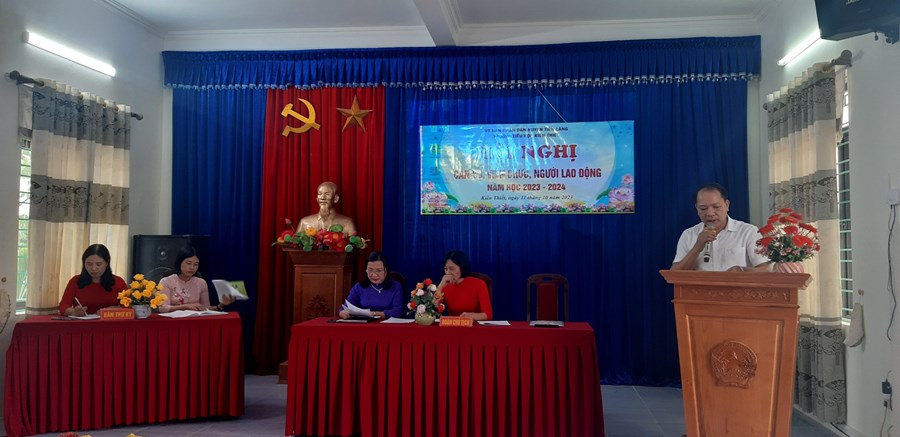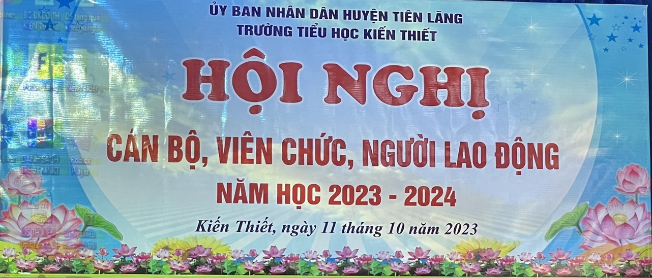 Chiều ngày 11/10/2023, trường Tiểu học Kiến Thiết long trọng tổ chức Hội nghị cán bộ, viên chức, người lao động năm học 2023-2024. Tham dự Hội nghị có: Ông Vũ Hồng Vân – Trưởng ban PH trường đại diện thường trực Ban cha mẹ học sinh, các đồng chí trong Ban giám hiệu cùng toàn thể cán bộ, giáo viên, nhân viên trong nhà trường.