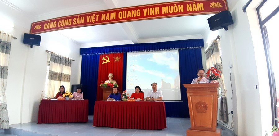 Thay mặt Ban Thanh tra Nhân dân, đồng chí Nguyễn Thị Luyến đã báo cáo các hoạt động của ban thanh tra năm học 2022 - 2023 và phương hướng hoạt động năm học 2023 - 2024. Được sự ủy quyền của đồng chí Hiệu trưởng, đồng chí Nguyễn Thị Hải - kế toán đã báo cáo Quy chế chi tiêu nội bộ sửa đổi.