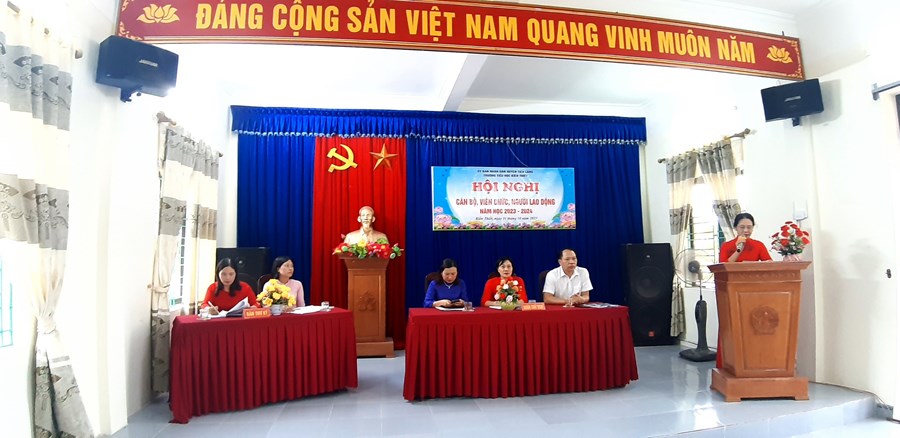 Sau báo cáo là phần thảo luận, đóng góp ý kiến sôi nổi của cán bộ, giáo viên, nhân viên nhà trường về các chỉ tiêu thi đua và biện pháp để thực hiện tốt kế hoạch nhiệm vụ năm học 2023 - 2024. Đoàn chủ tịch đã tiếp thu ý kiến, giải trình và tiếp tục hoàn thiện các giải pháp nhằm nâng cao chất lượng giáo dục trong năm học này.