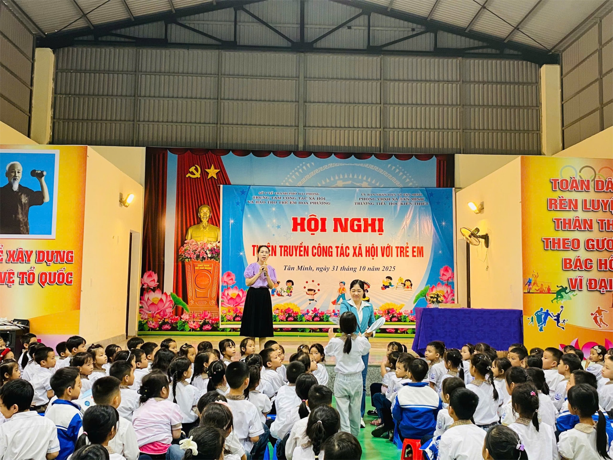 👉👉 Chiều ngày 31/10/2025 trường TH Kiến Thiết xã Tân Minh, HP đã phối kết hợp với Trung tâm công tác xã hội và bảo trợ Hoa Phượng tổ chức thành công Hội nghị. 👉 Buổi tuyên truyền đã khép lại với sự hào hứng và tiếp thu tích cực từ phía HS. Các em không chỉ được bổ sung kiến thức về quyền trẻ em mà còn được học hỏi thêm nhiều kĩ năng quan trọng trong việc tự bảo vệ bản thân.