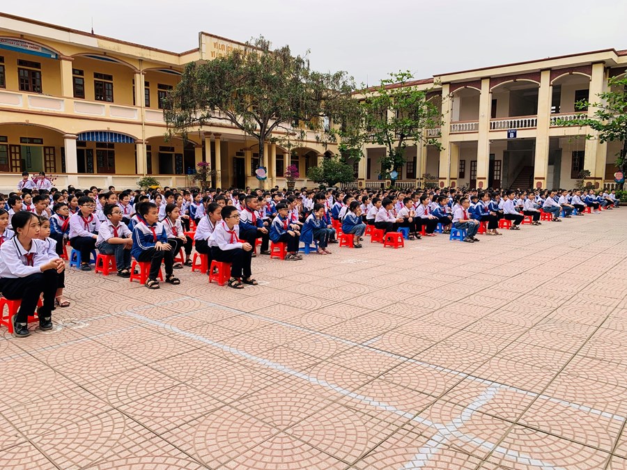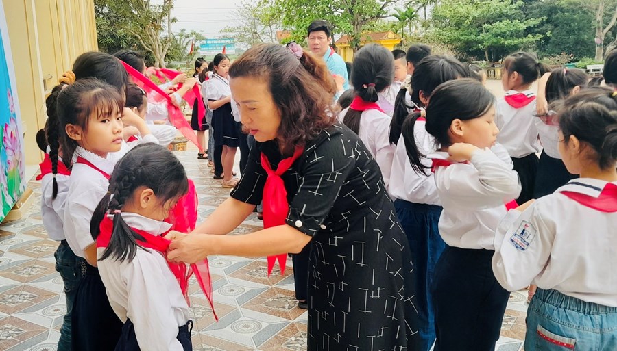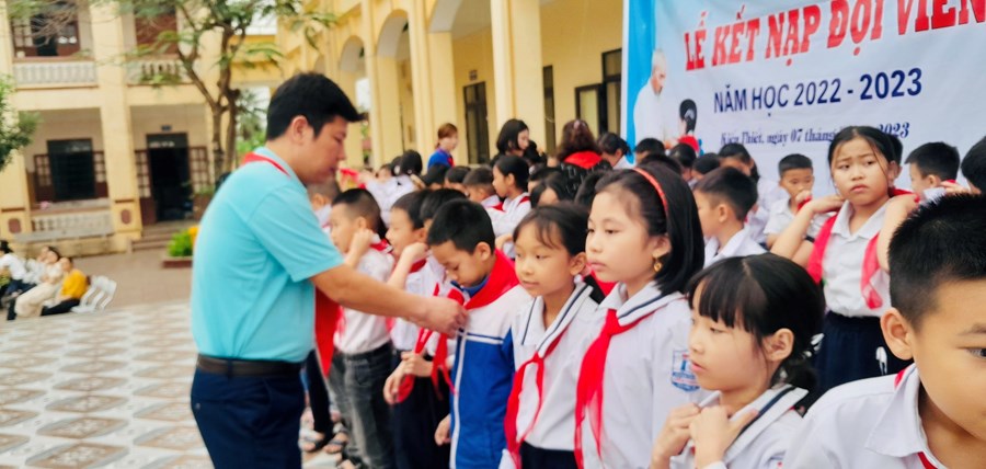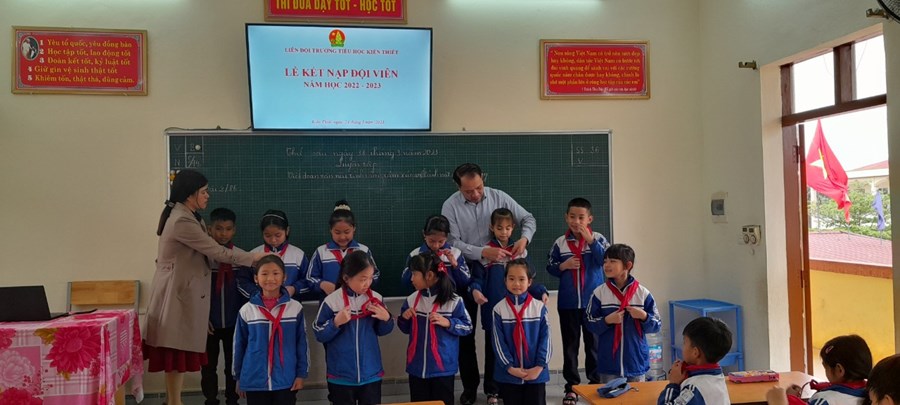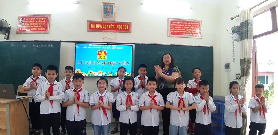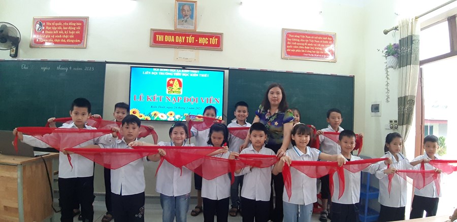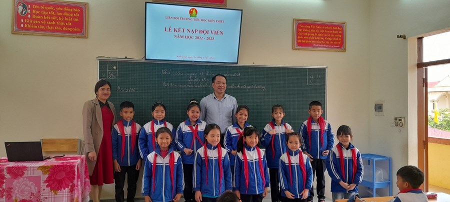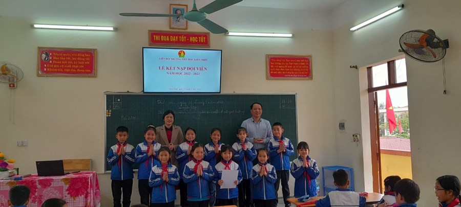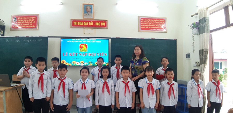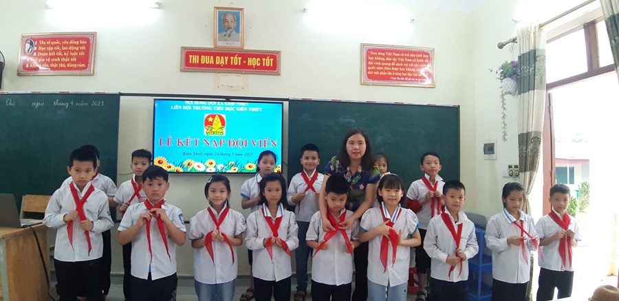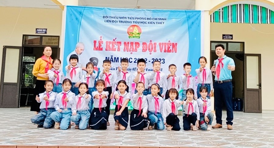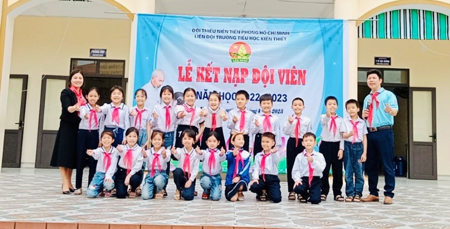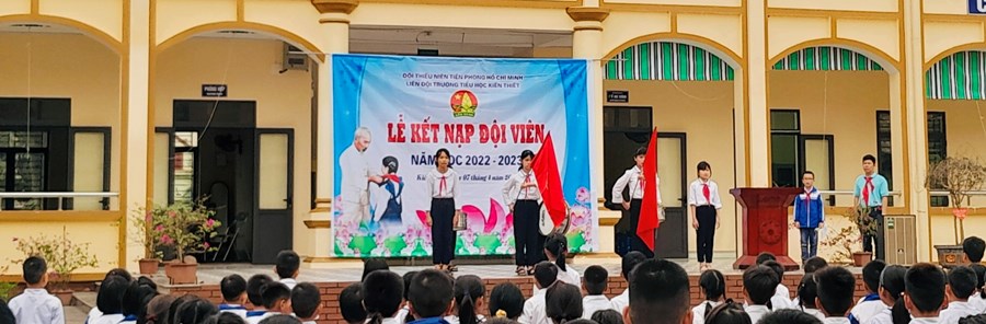 Một số hình ảnh kết nạp Đội của Liên đội Trường Tiểu học Kiến Thiết tại 2 cơ sở.