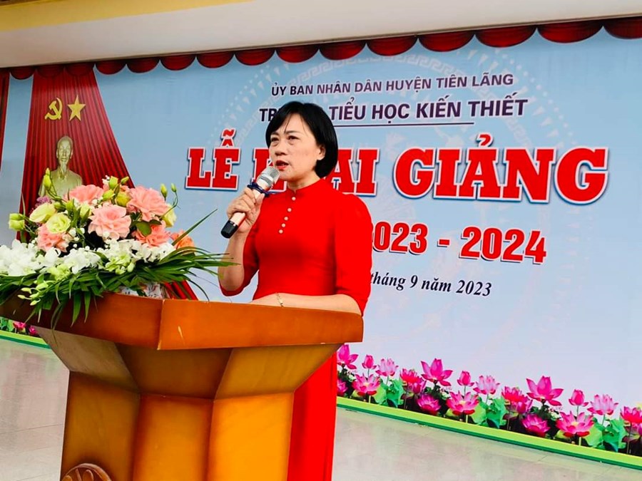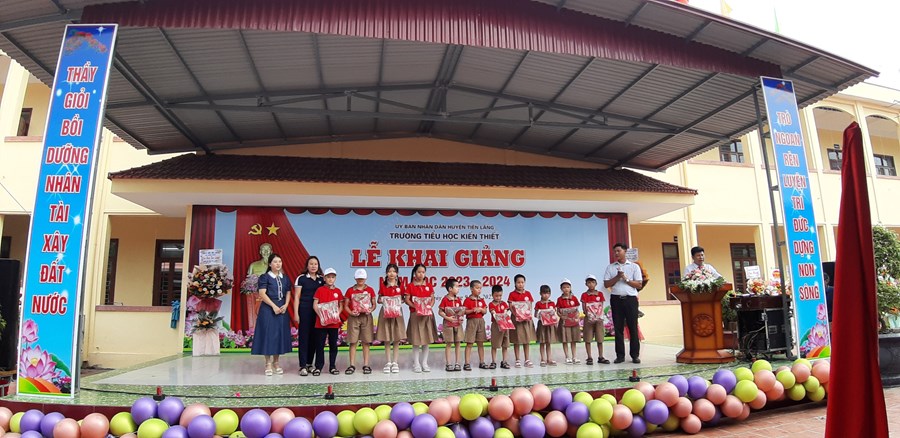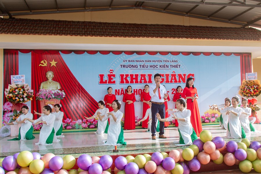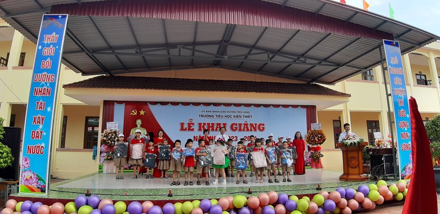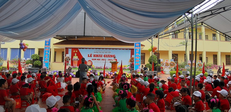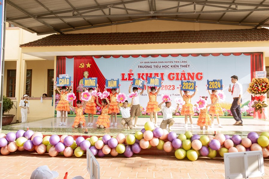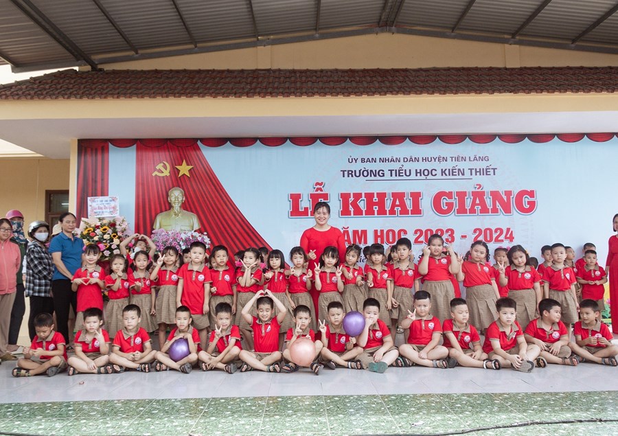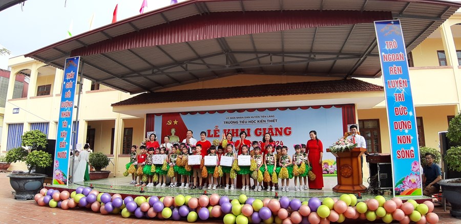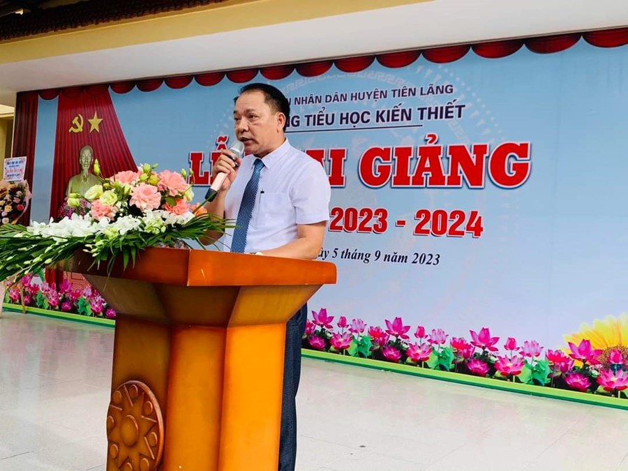 Thực hiện Quyết định Quyết định 2400/ QĐ-UBND ngày 10/8/2023 của UBND thành phố Hải Phòng về việc Ban hành khung thời gian năm học 2023-2024 đối với GDMN, GDPT và GD Thường xuyên thành phố Hải Phòng; Công văn số 362/GDĐT ngày 29 tháng 8 năm 2023 của Phòng GDĐT Tiên Lãng về việc tổ chức Lễ khai giảng và tổ chức dạy học năm học 2023-2024, ngày 5/9/2023 trường Tiểu học Kiến Thiết long trọng tổ chức Lễ khai giảng năm học 2023 - 2024. Về dự, động viên chúc mừng thầy trò có Ông: Vũ Đức Chà - Phó bí thư thường trực Đảng uỷ; ông: Vũ Văn Trường - Phó chủ tịch UBND xã đại diện cho ĐẢNG ỦY, HĐND, UBND, UBMTTQVN xã Kiến Thiết, Ban đại diện cha mẹ HS…