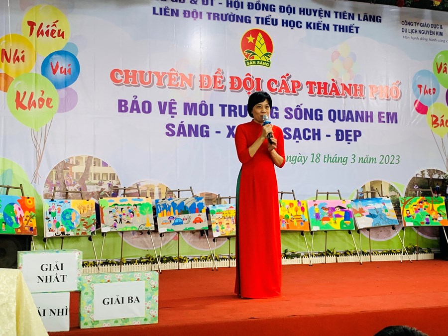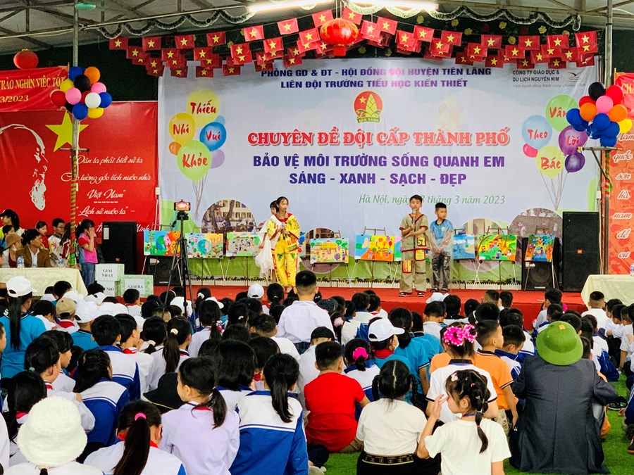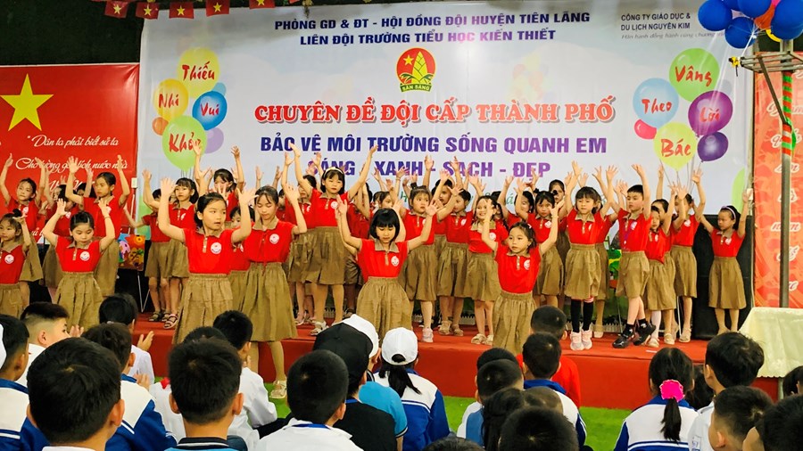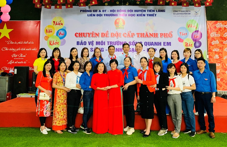 Thực hiện kế hoạch tổ chức chuỗi các hoạt động chào mừng tháng Thanh niên 2023, đẩy mạnh công tác tuyên truyền, nhận thức và hành động tới các bậc phụ huynh và các em học sinh về công tác bảo vệ môi trường. Liên đội Trường Tiểu học Kiến Thiết đã tổ chức thành công chuyên đề Đội cấp Thành phố với Chủ đề : " Bảo vệ môi trường sống quanh em " kết hợp với các hoạt động trải nghiệm thực tế. Về dự và chúc mừng toàn Liên đội có chị Nguyễn Hà Xuyên - cán bộ chuyên trách huyện đoàn cùng toàn thể các thầy cô giáo làm tổng phụ trách trong toàn huyện.