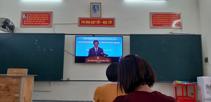 Một số hình ảnh CBGVNV trường Tiểu học Kiến Thiết đã tham gia buổi gặp gỡ của Bộ trưởng Bộ GD&ĐT Nguyễn Kim Sơn với nhà giáo, cán bộ quản lý, nhân viên ngành GD