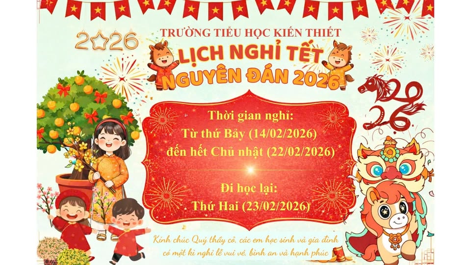 📢 📢 TRƯỜNG TIỂU HỌC KIẾN THIẾT THÔNG BÁO LỊCH NGHỈ TẾT NGUYÊN ĐÁN 2026.